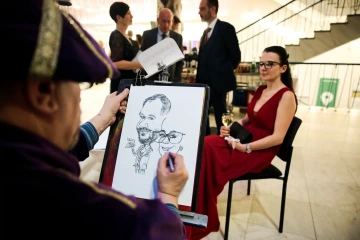 Hala společenského sálu: výčep s pivem Budvar, ochutnávka vín Sommini Winery(Slovensko) a Amerio Vincenzo (Itálie), karikaturista, fotokoutek (od 19.30 hod.)