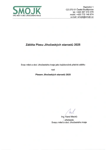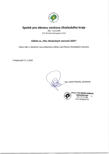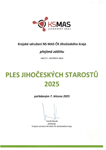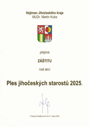 Ples jihočeských starostů je jedinečnou společenskou událostí, kde se setkávají zástupci jihočeských měst a obcí i další významní hosté z regionu. Tato akce nabízí příležitost pro formální i neformální setkání a navázání nových kontaktů mezi starosty, partnery a přáteli Jihočeského kraje. Čeká vás bohatý program, živá hudba, vynikající občerstvení a neopakovatelná atmosféra. Připojte se k nám na večer plný tance, zábavy a slavnostního prostředí, kde můžete oslavit krásy i úspěchy našeho regionu.
