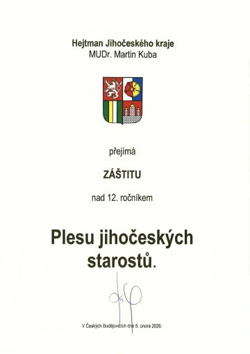 Ples jihočeských starostů je jedinečnou společenskou událostí, kde se setkávají zástupci jihočeských měst a obcí i další významní hosté z regionu. Tato akce nabízí příležitost pro formální i neformální setkání a navázání nových kontaktů mezi starosty, partnery a přáteli Jihočeského kraje. Čeká vás bohatý program, živá hudba, vynikající občerstvení a neopakovatelná atmosféra. Připojte se k nám na večer plný tance, zábavy a slavnostního prostředí, kde můžete oslavit krásy i úspěchy našeho regionu.
