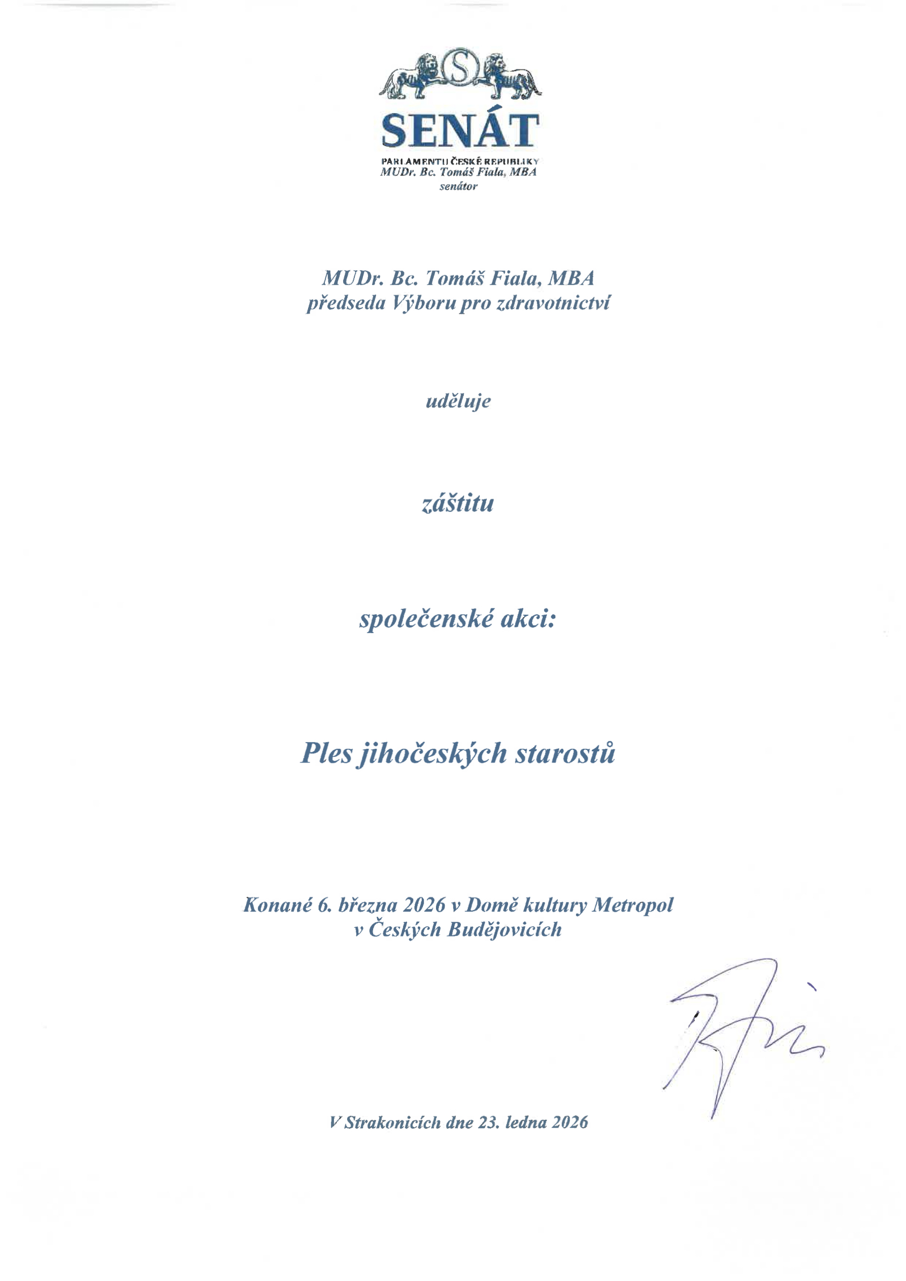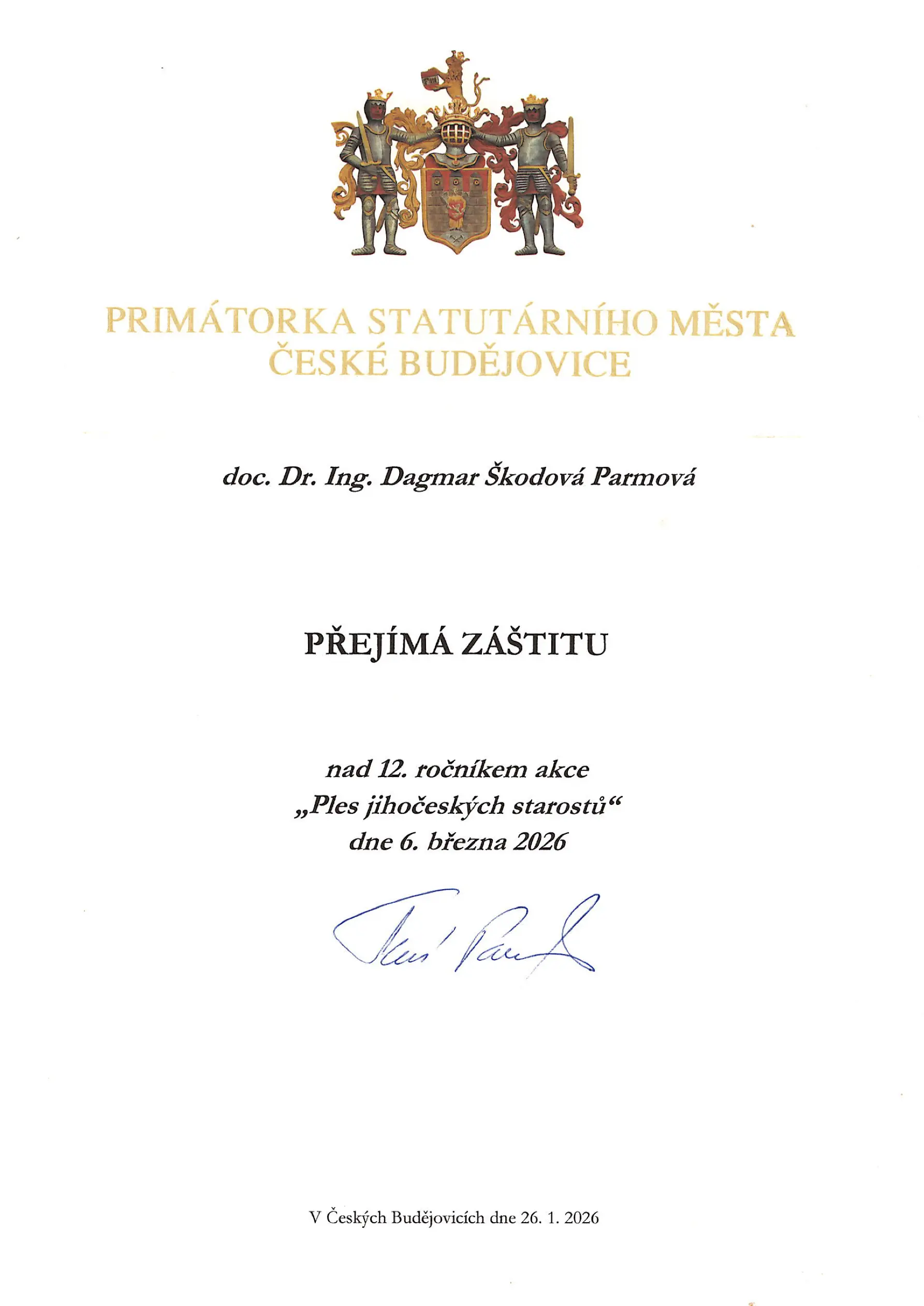 Ples jihočeských starostů je jedinečnou společenskou událostí, kde se setkávají zástupci jihočeských měst a obcí i další významní hosté z regionu. Tato akce nabízí příležitost pro formální i neformální setkání a navázání nových kontaktů mezi starosty, partnery a přáteli Jihočeského kraje. Čeká vás bohatý program, živá hudba, vynikající občerstvení a neopakovatelná atmosféra. Připojte se k nám na večer plný tance, zábavy a slavnostního prostředí, kde můžete oslavit krásy i úspěchy našeho regionu.